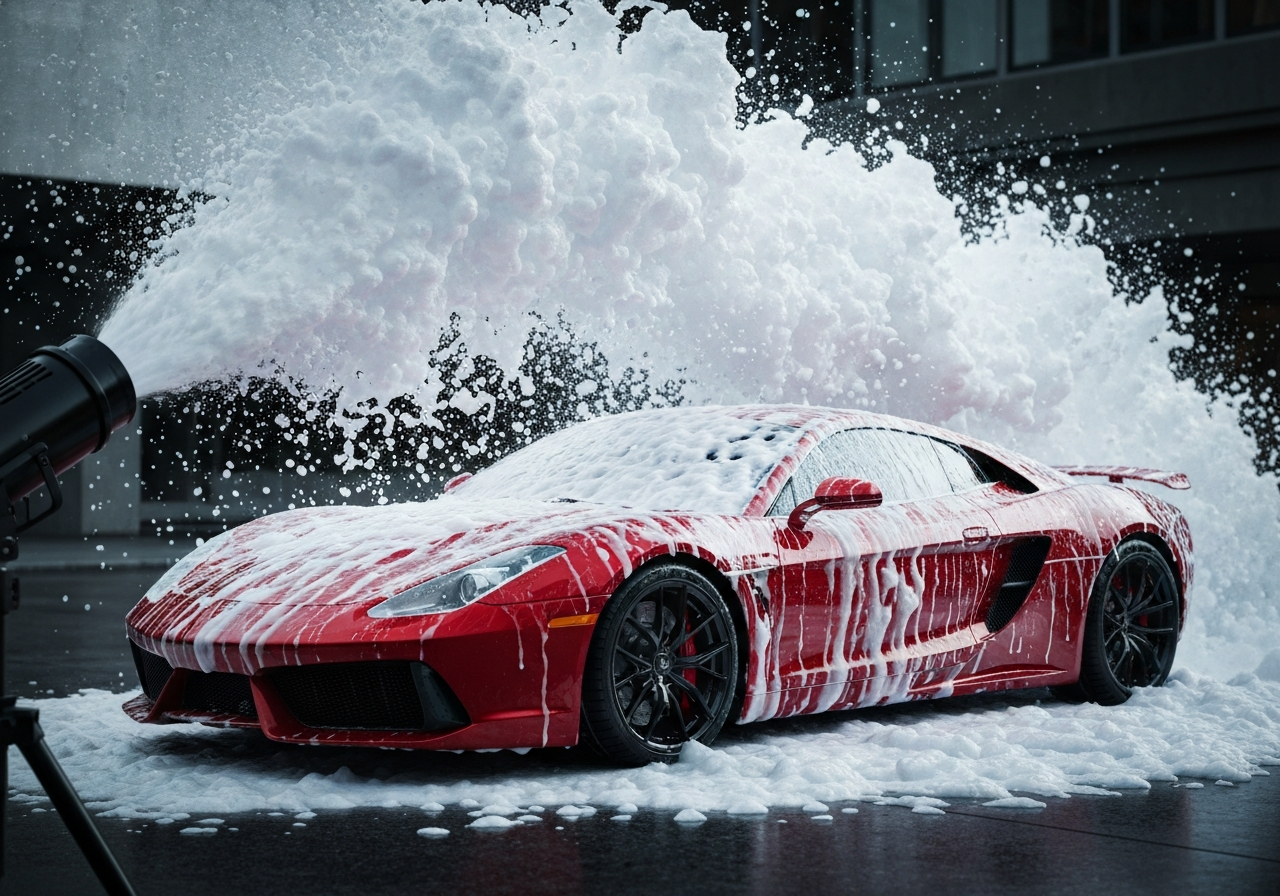 Pre-lavado de contacto cero. La espuma disuelve la suciedad antes de tocar la pintura.
